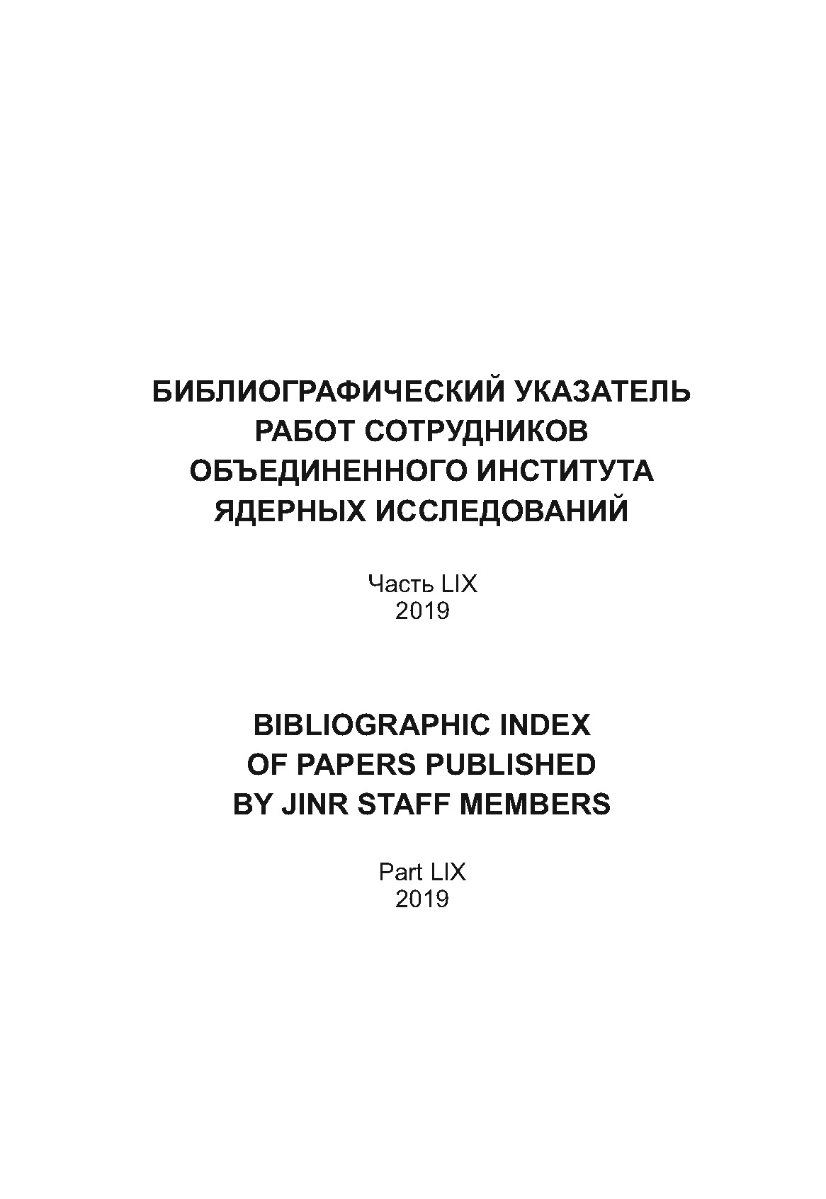 Указатель является ежегоднo издаваемым перечнем работ сотрудников Объединенного института ядерных исследований. Часть LIX включает материалы, опубликованные в 2019 г.