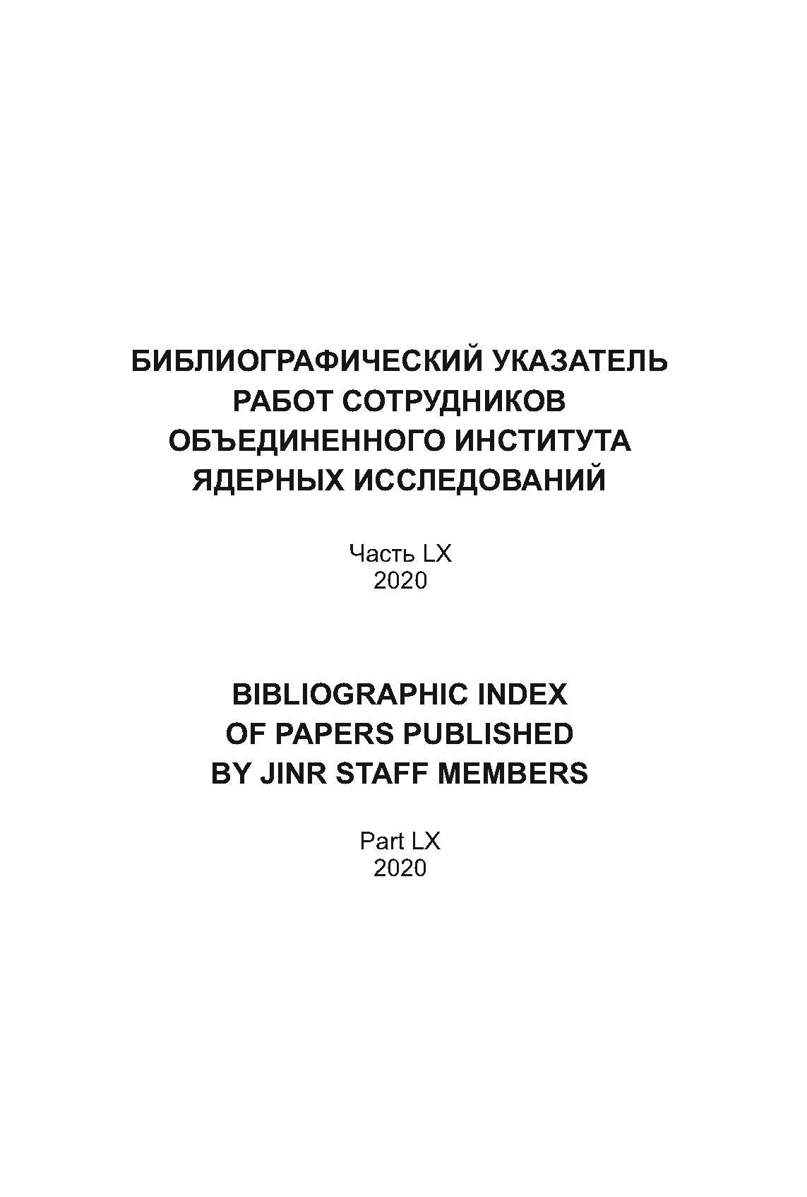 Указатель является ежегоднo издаваемым перечнем работ сотрудников Объединенного института ядерных исследований. Часть LX включает материалы, опубликованные в 2020 г.