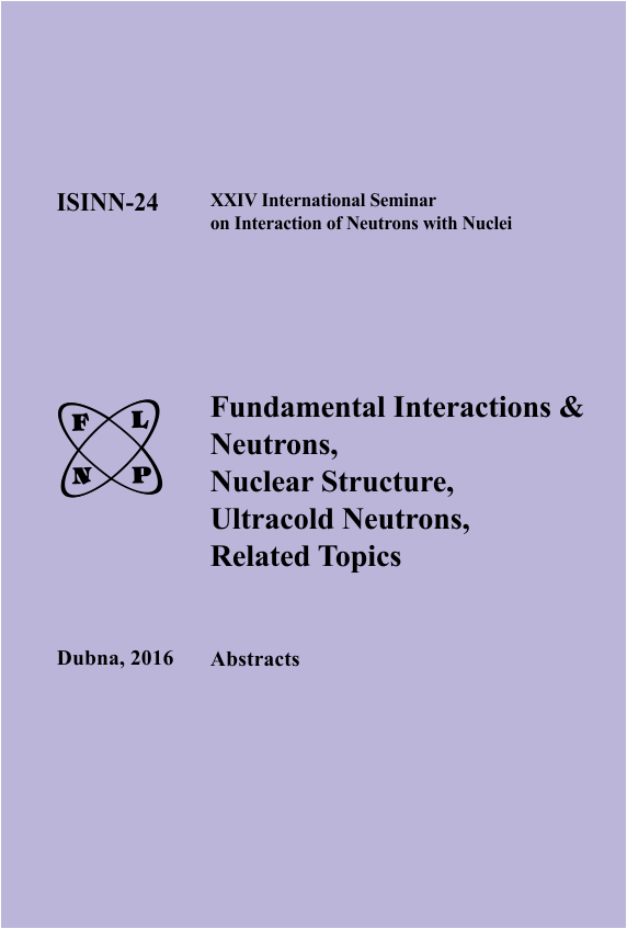 Труды XXIV Международного семинара по взаимодействию нейтронов с ядрами В сборнике представлено современное состояние исследований свойств ядра с помощью нейтронов: фундаментальных симметрий и свойств самого нейтрона, возбуждаемых им реакций и параметров ядра, определяющих их сечения, а также последние теоретические разработки всех этих вопросов. Очень детально представлены работы по всем аспектам, связанным с экспериментальными исследованиями по физике деления ядра нейтронами различных энергий. Достаточно полно описано современное состояние экспериментов по физике ультрахолодных нейтронов и установок для их получения, а также достигнутый к настоящему времени статус методически новейших экспериментов и результаты экологических исследований. Дубна: ОИЯИ, 2017. – 442 с.