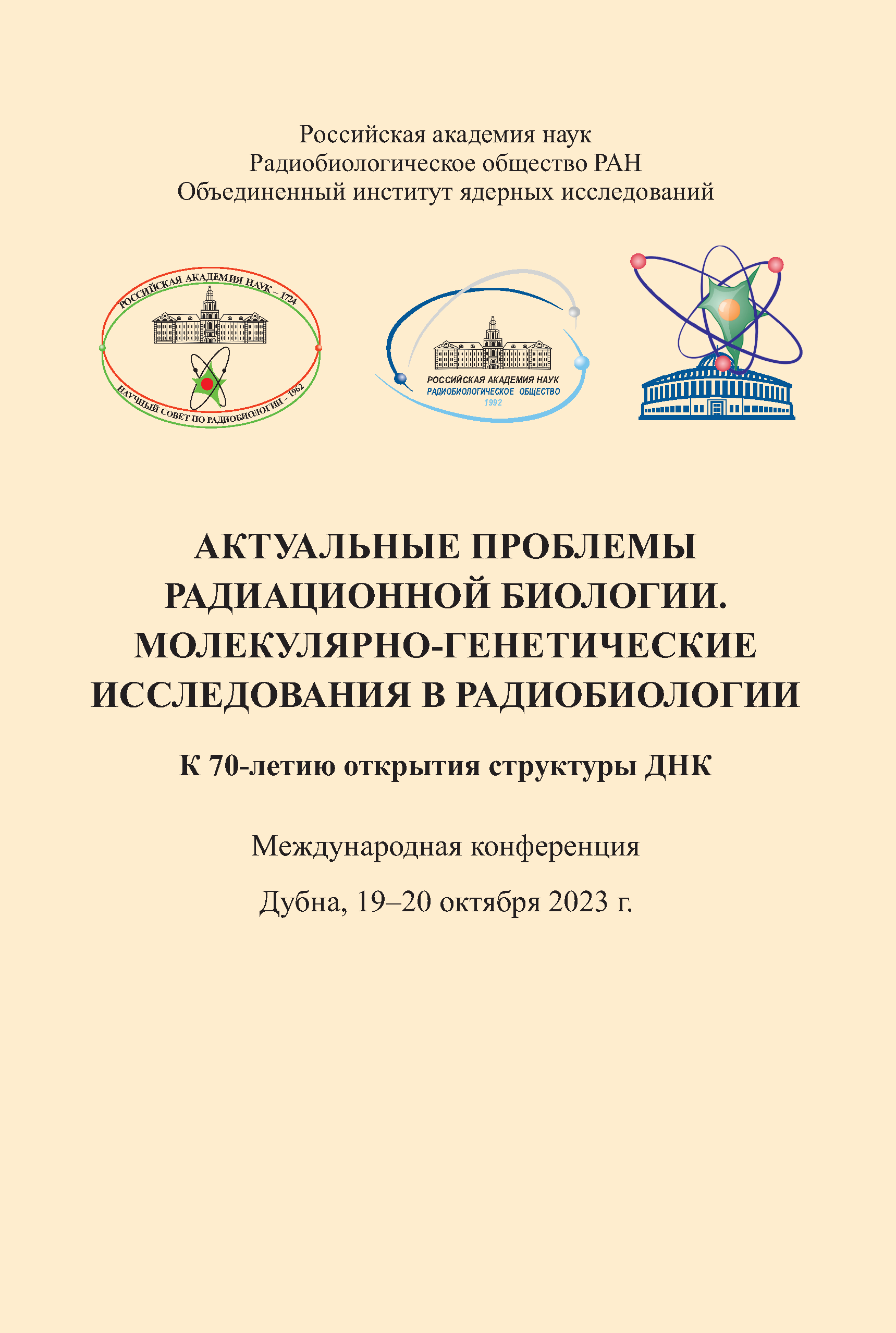 ISBN 978-5-9530-0624-8 Международная конференция В сборнике представлены материалы международной конференции «Актуальные проблемы радиационной биологии. Модификация радиационно-индуцированных эффектов». Обсуждаются фундаментальные основы модифицирующего влияния факторов физической и химической природы на радиационно-индуцированные эффекты в клетках с различным уровнем организации генома, в радиационной медицине и космической радиобиологии. Обращено внимание на фундаментальные основы поиска противолучевых средств, направленных на снижение уровня повреждающего действия радиации и смягчение медико-биологических последствий облучения; совершенствование лучевой терапии опухолей — модификацию радиационных эффектов облучения с помощью факторов химической, физической и биологической природы; решение проблем радиационной безопасности космических полётов. Тезисы публикуются в авторской редакции. Дубна: ОИЯИ, 2024. — 244 с. К 70-летию открытия структуры ДНК В сборнике представлены материалы международной конференции «Актуальные проблемы радиационной биологии. Молекулярно-генетические исследования в радиобиологии». Конференция приурочена к 70-летию открытия структуры ДНК: в апреле 1953 г. в журнале «Nature» была опубликована статья Джеймса Уотсона и Фрэнсиса Крика «Структура дезоксирибонуклеиновой кислоты», в которой впервые предложена модель пространственной структуры ДНК — двойная спираль. В программу конференции включены лекции ведущих ученых и сообщения о современных экспериментальных данных и теоретических разработках в области изучения механизмов формирования генетических и эпигенетических изменений в клеточных структурах, подвергнутых действию ионизирующих излучений разного качества, и последствий этих изменений. Тезисы докладов представлены в авторской редакции. Дубна: ОИЯИ, 2023. — 129 с. Abstracts; Papers by Young Scientists The collection contains theses of the reports presented at the Armenian meeting and short papers by young scientists. The theses and young scientists’ papers are published in the authors’ wording. Dubna: JINR, 2023. — 36 p., ill. Тезисы докладов XXIX Международного семинара по взаимодействию нейтронов с ядрами Дубна: ОИЯИ, 2023. — 126 с. Fifth International Conference, Dedicated to N. W. Timofeeff-Ressovsky and His Scientific School «Modern Problems of Genetics, Radiobiology, Radioecology, and Evolution», Nor Amberd, 5–10 Oct. 2021: Abstracts of Presentations; Memories & Discussions; Lectures Dubna: JINR, 2021. — 178 p., ill. Book of Abstracts of the International Conference Dubna: JINR, 2021. — 83 p. Труды XXVIII Международного семинара по взаимодействию нейтронов с ядрами Дубна: ОИЯИ, 2021. — 277 с. Труды научного семинара,