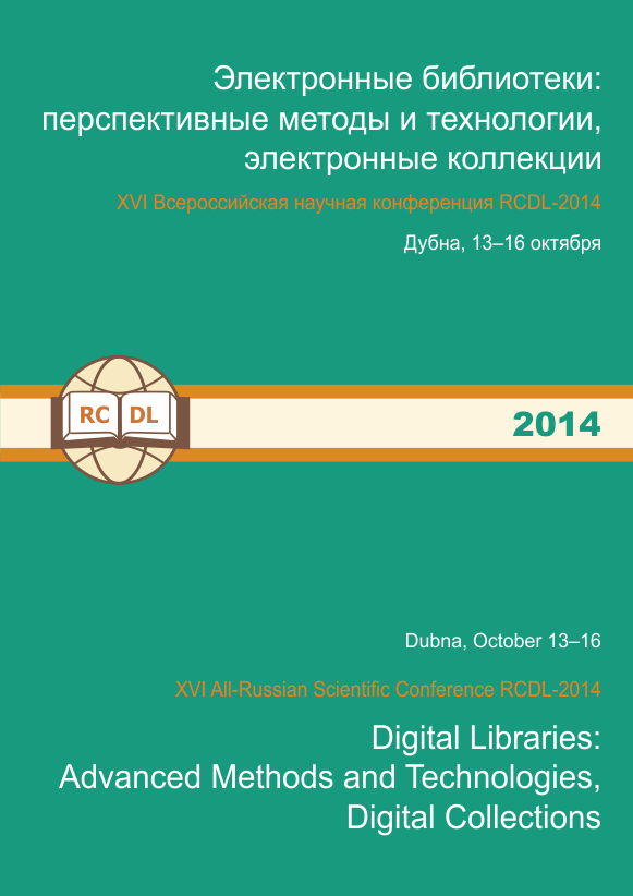 XVI Всероссийская научная конференция RCDL-2014 Электронные библиотеки — область исследований и разработок, направленных на развитие теории